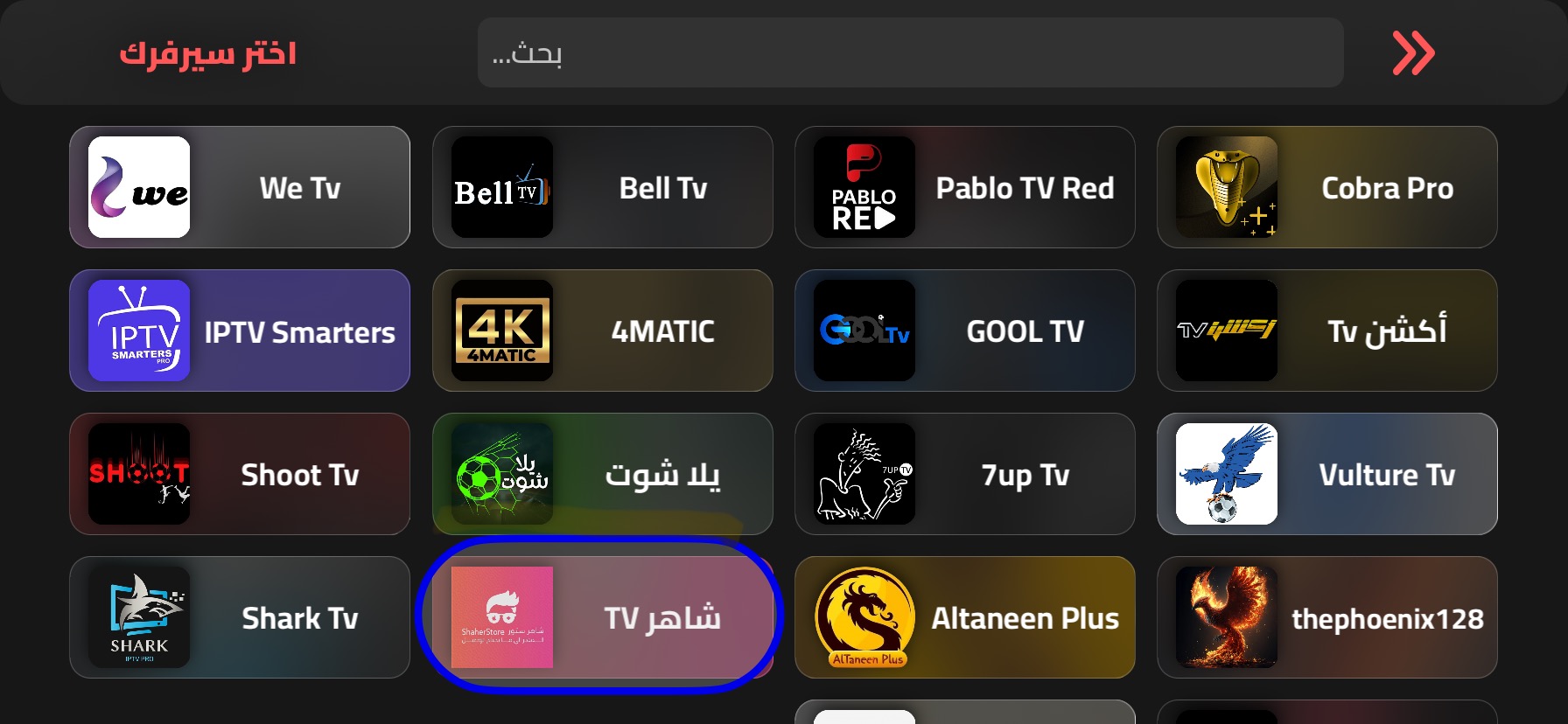 بعدها تبحث عن تطبيق باسم ( شاهر TV )